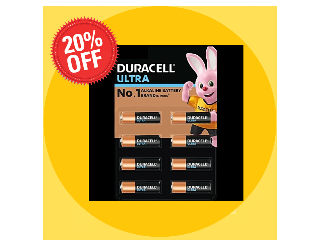 Duracell AA & AAA Ultra Card Of 8Pcs CELL FLAT 20% OFF ON MRP